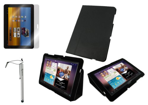 rooCASE 3n1 Ultra Slim (Black) Leather Case Cover Cover / Capacitive Stylus / Anti-Glare Screen Protector for Samsung GALAXY Tab 10.1 Wi-Fi (NOT Compatible with Verizon 4G LTE) Overview: